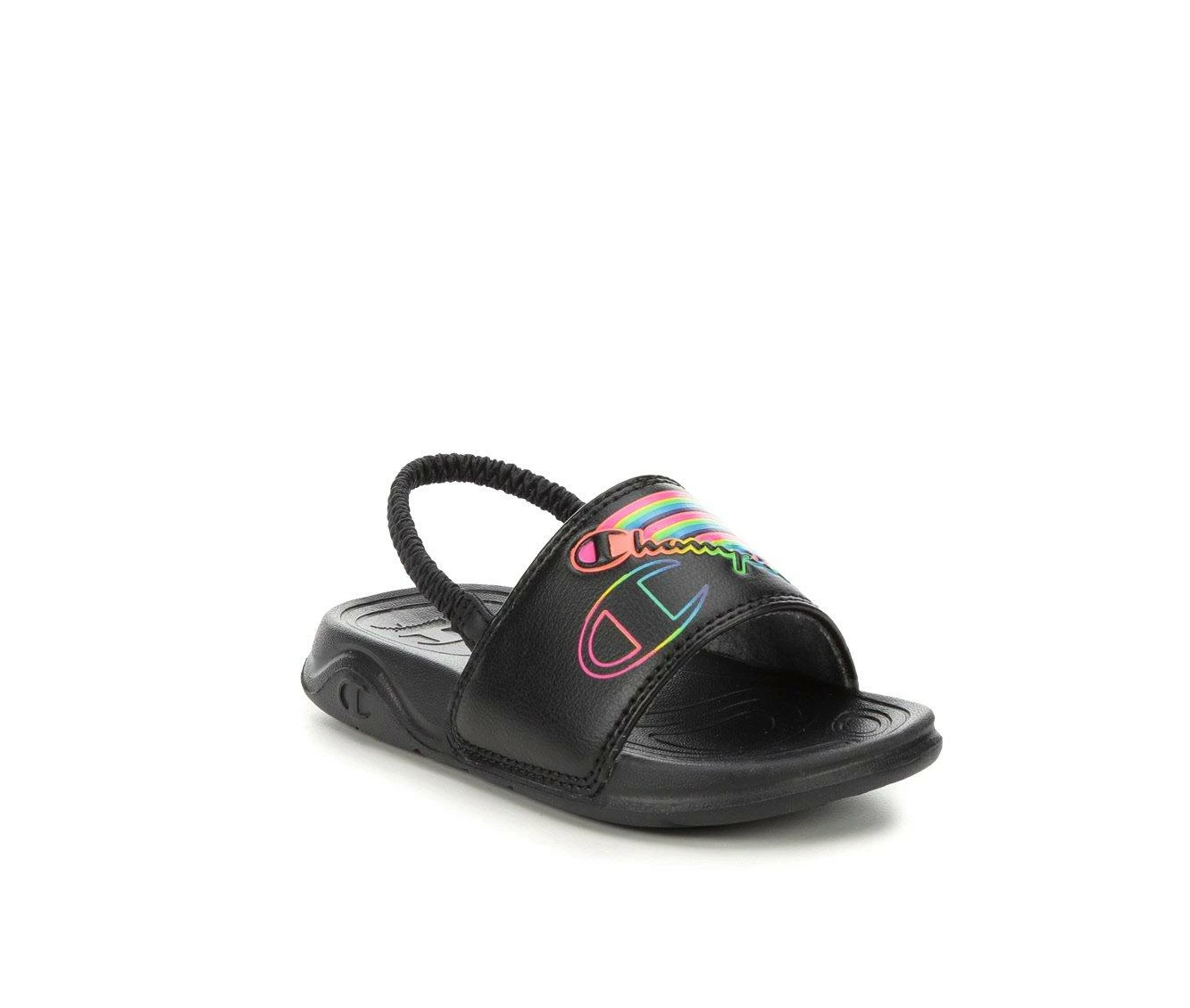 Hot Sale 😀 Girls’ Champion Infant Mega Slide Dual Stripe Sport Slides Blk/Blk/Rainbow 🌟